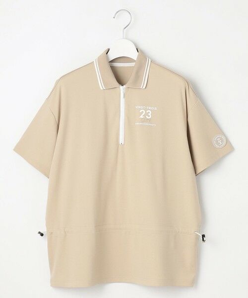 ドロスト仕様でしっかりウエストマーク。美シルエットになるカットソー ■デザイン ・スポーティな衿のライン&フロントファスナーが、ヘルシーでアクティブな印象に ・ロゴプリントやクリアカラーのオリジナルワッペンで、トレンド感をプラス ・ヒップラインまでカバーできる長め丈で、体型カバーとスタイルアップを両立 ・ボトムスを選ばず着まわせる、汎用性の高いハイブリッドポロシャツ ■素材 ・透けにくく適度にしっかり感のある「ナイロンベアスムース」素材 ・なめらかで上質な肌ざわりが特徴。快適な着心地を実現 ・高いストレッチ性で動きやすく、アクティブシーンにも最適 ・UVケア機能付きで、屋外での着用も安心 ・凹凸のないスムースな表面で、上品さとスポーティさを両立 ※商品画像はサンプルを使用しているため、実際にお届けする商品と色味やサイズ、細部のデザイン等の仕様に若干の変更がある場合がございます。予めご了承ください。洗濯表示【本体のみ】40℃まで弱洗濯可 漂白不可 タンブル乾燥不可 日陰つり干し乾燥 アイロンは120℃まで ドライクリーニング不可 弱いウェットクリーニング可