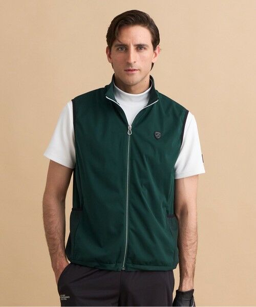 ■デザインゴルフに最適なジャージーベスト。衿裏には汗がべたつきにくいメッシュ素材を使用し、裾はドローコード仕様でサイズ調節が可能です。寒い時期には裾を絞って風の侵入を防げます。両サイドの腰部分にはメッシュポケットを配し、ゴルフボールなどの小物を収納可能。また、グローブをしたままでも持ちやすいオリジナル引手を採用し、高級感もアップ。急な小雨や肌寒い朝にも対応でき、コンパクトに持ち運べる万能アイテムです。