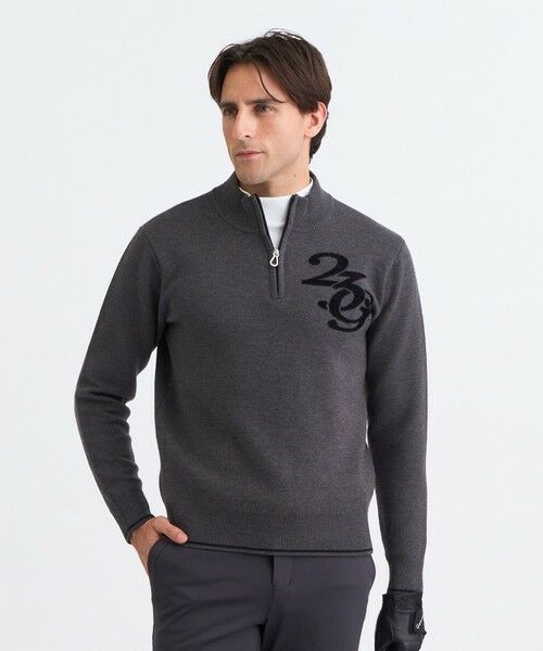 モチモチ感が心地よい、上品カジュアルを叶えるトレーナーライクなニット■デザインまるでトレーナーのような着心地のカジュアルニットスタンドカラーのジップアップデザインで、気温に合わせて首元を調整し、快適に過ごせます。シンプルながらも洗練されたデザインで、どんなスタイルにも合わせやすい万能アイテムです。左胸には毛足のある糸で立体的に表現された「23g」のロゴが施され、大胆なアクセントになっています。スポーティーながらも大人の上品なカジュアルスタイルを演出するアイテムです。首元がすっきりしているので、柄物のポロシャツやモックネックとレイヤリングしてもまとまりやすい便利なニット。