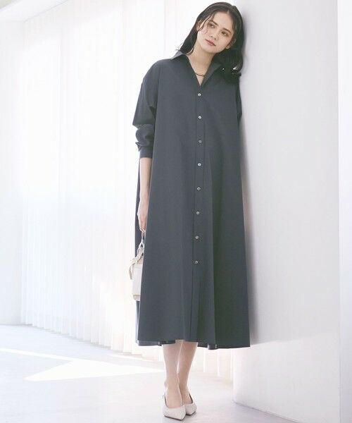 ゆったりとしたテントラインシルエットのシャツワンピース。身体のラインを拾わないデザインと、レギュラーカラーのシャープさが合わさって、大人のリラックスムード漂うシャツワンピースに仕上がりました。1枚着としてさらっと着ていただくのはもちろん、ビスチェをレイヤードしたコーディネートもオススメです。落ち着いたネイビーのようなダルブルー系(#074)、爽やかなホワイト系(#001)、春夏らしいムードを高めるブルー系(#070)の3色展開です。