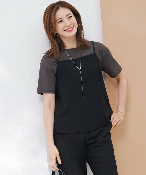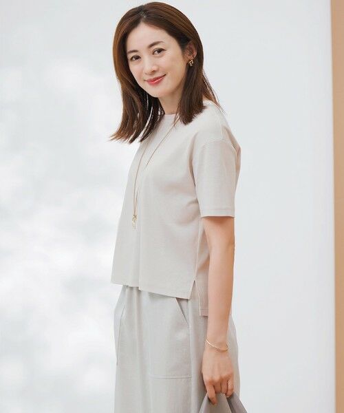 速乾性のある素材を使用し、暑い夏にも心地よく着られる人気のIT Tシャツ。肩を少しドロップさせた程よいフィット感のクルーネックTシャツです。サイドの切り替え仕様とクロップド丈でボトムにインでもアウトでも合わせやすく、ウエスト位置にディティールが入っているボトムにも好相性で、着合わせ抜群。短すぎず、ほどよくウエスト部分をカバーするバランスの丈もうれしいポイント。カラーは、ベーシックなホワイト(#001)、ヘルシーなアプリコット(#022)、やわらかな雰囲気のベージュ(#033)、ニュアンス感のあるダークブラウン(#035)、爽やかなスカイブルー(#072)の5色展開です。