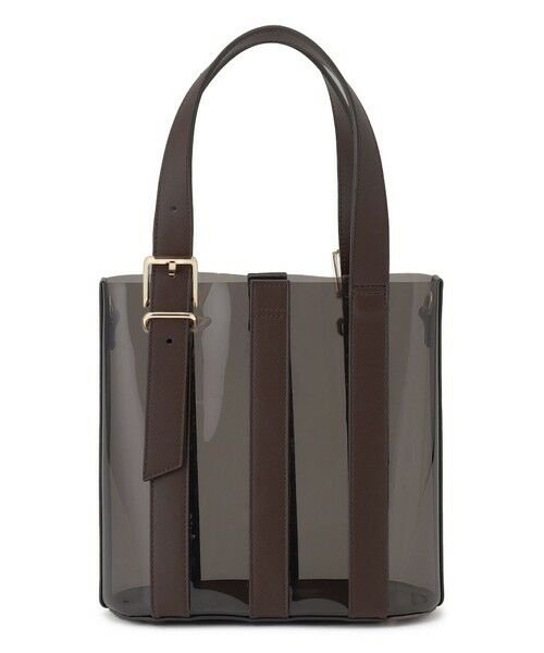 季節感のあるクリアな素材を使用したミニショルダーバッグです。トレンド要素がたくさん詰まった特徴的なバッグはマンネリ化しがちなコーディネートのアクセントにもおすすめです。コンパクトながらしっかりとした内容量があり、ペットボトルがすっぽり入ります。底には底鋲をつけて直置きしても底が付かないようになっています。また、持ち手や取り外し可能なショルダー紐にはしなやかなフェイクレザーを使用しているので、持ちやすさも◎。スナップで留める仕様になのも嬉しいポイント。カラーはシックでモードな雰囲気ブラック(#005)とトラッドなスタイルにも合うダークブラウン(#035)の2色展開です。