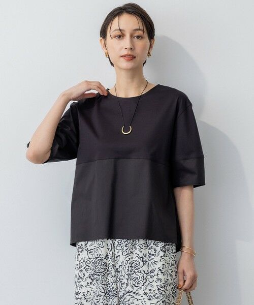 【洗える】シルエットスムースコンビ バックフレア カットソー