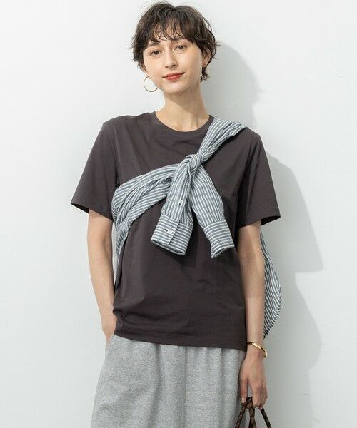 シンプルながらも洗練されたベーシックTシャツです。開きすぎない上品な首元がポイントで、一枚で着てもインナーとしてもサマになります。どんなボトムにも合わせやすい丈感とシルエットで、カジュアルなデニムスタイルから、きれいめなスカートやパンツスタイルまで、幅広いコーディネートに対応します。デイリーユースに欠かせない、着回し力抜群のアイテムです。上品な素材感とベーシックなデザインで、長くご愛用いただけます。カラーは、清潔感のあるホワイト(#001)、ニュアンス感のあるグレー(#004)、印象引き締まるブラック(#005)、明るい印象のピンク(#012)、ヘルシーな雰囲気のオレンジ(#020)、フェミニンさをプラスするブラウン(#030)、やわらかな印象のベージュ(#033)、顔回りを明るく見せるイエロー(#040)、爽やかなサックスブルー(#073)、洒落感のあるダルブルー(#074)の10色展開です。