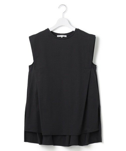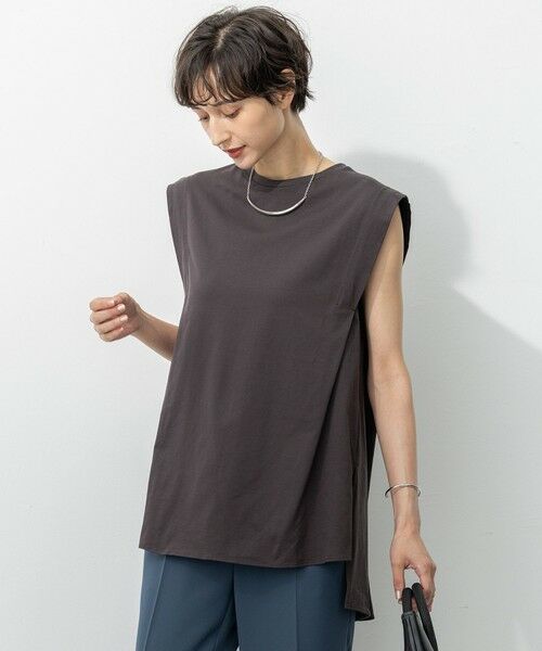 ややオーバーサイズシルエットのタンクトップ。裾に向かって緩やかに広がるフレアデザインが、気になる腰回りをカバーしつつ、すっきりと見せてくれます。一枚でさらりと着こなすのはもちろん、シアーシャツやカーディガンとのレイヤードスタイルもおすすめです。シンプルなデザインなので、きれいめパンツと合わせてオフィススタイルに、デニムと合わせてカジュアルダウンするなど、幅広いコーディネートが楽しめます。夏の暑い時季から秋口まで、ロングシーズン活躍する着回し力抜群のアイテムです。カラーは、清潔感のあるホワイト(#001)、ニュアンス感のあるグレー(#004)、印象引き締まるブラック(#005)、フェミニンさをプラスするブラウン(#030)、やわらかな印象のベージュ(#033)、洒落感のあるダルブルー(#074)の6色展開です。