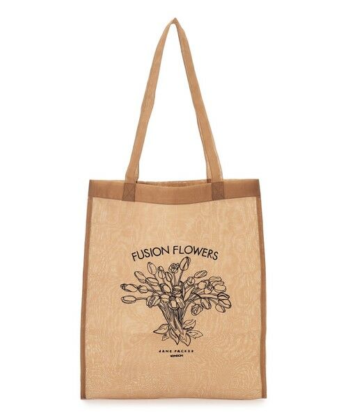 イギリスのフローリスト JANE PACKERとコラボレーションしたトートバッグです。軽やかで涼やかな印象の透け感のあるオーガンジー素材を二重使いした本体にJANE PACKERさんが創作の際にキーワードにされていた言葉、“FUSION FLOWERS”が刺繍で施されています。また、彼女のアイコンでもあるチューリップのモチーフも刺繍で表現いたしました。繊細なステッチ刺繍が立体的でチューリップが生き生きとした華やかなデザインになっています。とても軽い素材ですが、ペットボトルなどもたっぷり入る容量も魅力です。同シリーズのTシャツと合わせてお使いいただくのもおすすめです。カラーはクリーンな印象のホワイト(#001)、こなれ感のあるキャメル(#034)、ニュアンスカラーの#グレー(#004)の3色展開です。