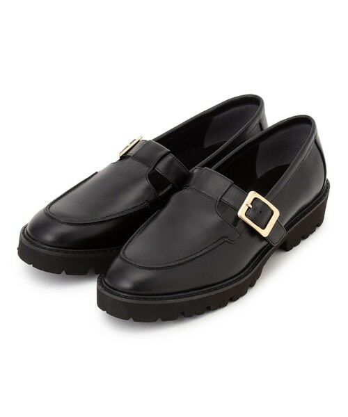 艶のある、上質なスムースの牛革を使用したトレンドのベルトローファーです。ゴールドのバックルがワンポイントになっています。軽いトラックソールを使用しており、クッション性に優れた安定感のある履き心地で、足に優しいデザインです。長時間歩いても疲れにくいのも魅力。ソックスを合わせいただくと今年らしいスタイリングが完成します。