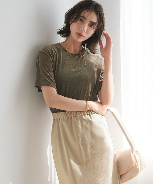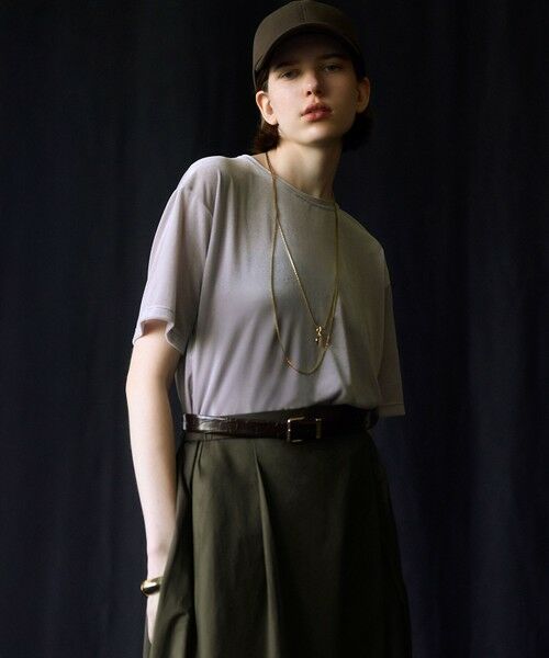 薄手ながらも密度の高いシアーなベロア素材を使用した、エレガントな印象のプルオーバーです。ベロア特有の光沢感を持ちつつも、シアーな質感で重くなりすぎず、軽やかな秋の装いを演出します。ゆとりのあるドロップショルダーのTシャツバランスで、リラックス感がありながらも上品な大人のカジュアルスタイルを叶えます。残暑が厳しい時季にも、一枚で秋のムードを取り入れられるのが嬉しいポイント。デニムでカジュアルダウンしたり、きれいめパンツやスカートと合わせてクラス感を高めたりと、幅広いコーディネートをお楽しみいただけます。カラー展開は、ニュアンス感のあるライトグレー(#033)、カジュアルなスタイルに映えるカーキ(#054)、爽やかなスカイブルー(#072)の3色展開です。