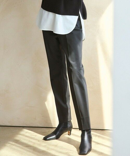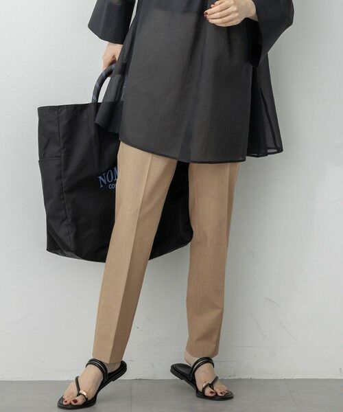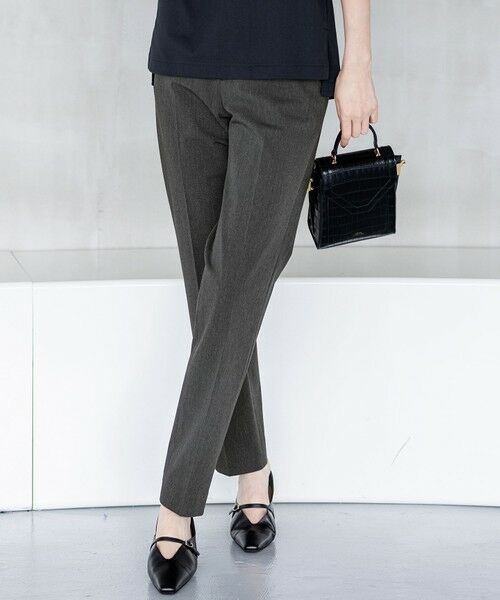 センタープレスが入ったきれいめテーパードシルエットのパンツ。細身のシルエットで足元をスッキリと見せてくれ、きちんとした印象を与えてくれる1本。ウエストの後ろはゴム仕様で穿きやすいつくりにしています。シャツやブラウスと合わせてきれいめなオフィススタイルにはもちろん、ざっくりとしたニットと合わせてカジュアルなスタイリングにも幅広く合わせていただけます◎。シーズン問わず穿きやすい素材のうえに、シンプルで合わせやすくデイリー使いとして重宝する一枚です。カラーは、優しい色合いのベージュ(#033)、こなれた印象のグレー(#004)、ベーシックなブラック(#005)の3色展開です。