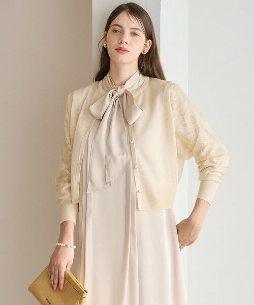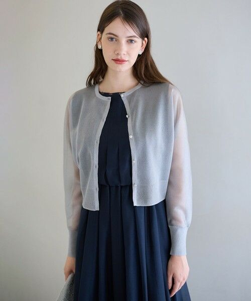 デザイン性のある袖のワンピースやインナーにも合わせやすいドルマン型ショートカーディガン。 ビジューボタンをあしらいフロントの印象をさりげなく華やかに彩ります。 手首までの長さのある袖丈ですが、素材の繊細な質感と長めの袖口リブ仕様にすることで、華奢な印象になるように仕上げています。カラーは品よく煌めきを加えた3色展開。肌なじみよくエレガントなゴールド(#090)、品よく爽やかな印象のシルバー(#091)、シックな雰囲気を引き立てるブラック(#005)です。