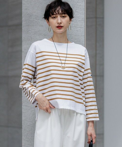 ■素材肉感を拾わない中肉天竺素材を使用しており、生地の厚みがありながらも着心地の良い伸度を持つのArmor-luxならではの品質です。カジュアルになりすぎないパネルボーダーは23区オリジナルデザインで、上品な大人のカジュアルスタイルを演出します。