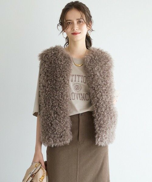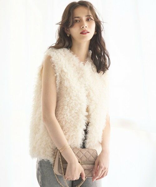ランダムにカールしたボリュームのある毛足が魅力の、フェイクファージレ。パンツやワンピースに合わせやすいよう考えられた絶妙なレングスバランスで、シンプルなコーデにプラスするだけで旬なスタイリングが楽しめます。優しい印象で淡い色とのコーディネートがオススメのアイボリー(#002)とニュアンスのある色味がお洒落なブラウン(#030)の2色展開です。