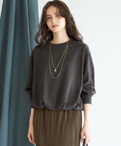 裾のバルーンシルエットが特徴的な、モード感のあるスウェットです。裾のふくらみを保つため、内側に薄手の天竺素材を裏地として使用し、快適な着心地と美しいシルエットを両立させています。どんなボトムスとも合わせやすいデザインです。カラーは、黄味がありなじみの良いアイボリー(#002)、落ち着いた印象のグレー(#004)、合わせやすいネイビー(#075)の3色展開です。