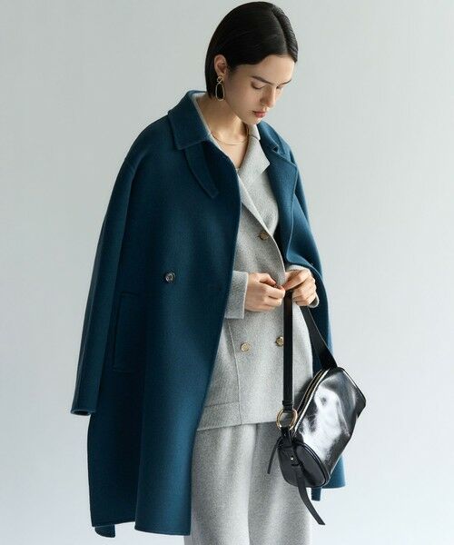 釦の留め方によって様々な表情を楽しめるリバーコート。ボタンを留めて襟を立たせエレガントな印象にも、顔周りの襟を折りクラシカルな雰囲気にも。またチェスターコートとしてもお召頂けます。ゆったりとした身幅と袖感なので、インナーに左右されないのも嬉しいポイント。腰回りもカバーできるシルエットなのでスタイルアップ効果もある万能アイテムです。リバー仕立てなので軽量なのに暖かく、サイドスリットが軽やかな印象に魅せてくれます。カラーは、柔らかく軽やかなオートミール(#033)、肌馴染みの良いモカ(#030)、着映え力抜群なティールグリーン(#064)、こなれた印象のミディアムグレー(#004)、王道主力カラーのブラック(#005)の5色展開です。