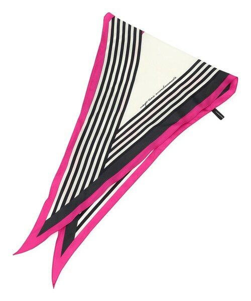 滑らかな肌触りと上品な光沢感が特徴の高品質なシルク素材を使用しています。日本製ならではの丁寧な縫製で、長くご愛用いただける一枚です。ランダムストライプがスタイリッシュな印象を与え、コーディネートのアクセントとして活躍します。首元やヘアに巻いてお顔周りを華やかに、バッグにつけて上品さをプラスするなど、様々なスタイルに合わせやすく、汎用性の高いアイテムです。スクエア状のスカーフに比べ折りたたむ手間がなく巻きやすいので、スカーフに苦手意識がある方にもおすすめです。カラーは、視線を集める鮮やかなマゼンタ(#514)とシックな印象のブラック(#505)の2色展開です。