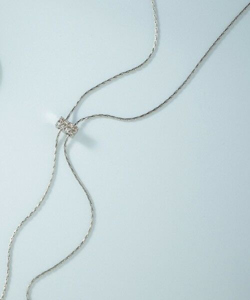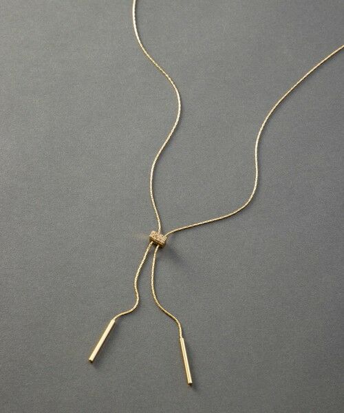 繊細で上品な輝きを放つ、スネークチェーンタイプのラリエットネックレス。スライド式のラリエットタイプなので、その日の服装に合わせて自由に長さを調整可能です。留め具部分にはきらりと繊細に光るクリスタルガラスをあしらいました。先で揺れる華奢なバーがシンプルながらも洗練されたデザインで、カジュアルからフォーマルまで幅広いコーディネートにマッチします。カラーは、華やぎを与えるゴールド(#090)と凛とした印象のシルバー(#091)の2色展開です。