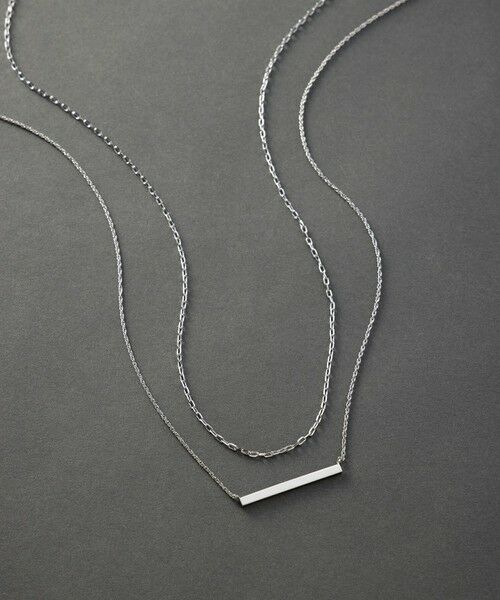 異なる長さの2本のチェーンが重なったレイヤードネックレス。ひとつ身につけるだけでトレンド感のあるスタイリングが完成します。上部には繊細なチェーン、下部にはなめらかなチェーンにバー型のトップがあしらわれており、ミニマルで上品なアクセントをプラス。別々でも着用できる2WAY仕様です。バー型のワントップネックレスは、後ろの金具部分がスライドボール仕様のため長さを自由に変えていただけます。カジュアルなTシャツから、きれいめなブラウス、ドレッシーなワンピースまで、幅広いコーディネートにマッチしてくれます。デイリー使いはもちろん、オフィスやちょっとしたお出かけにもおすすめのアイテムです。カラーは、華やぎを与えるゴールド(#090)と凛とした印象のシルバー(#091)の2色展開です。