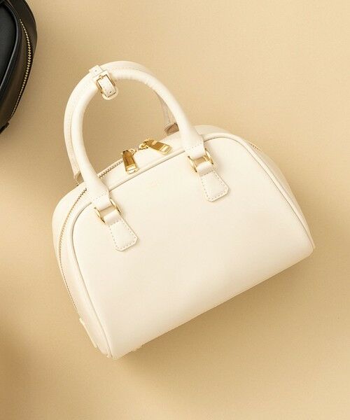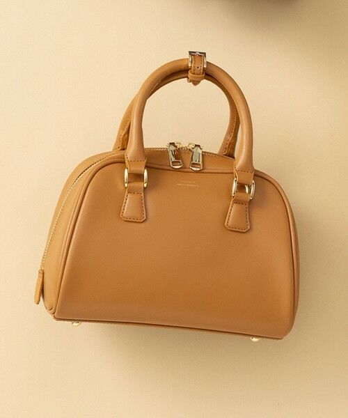 フェイクレザーにゴールドの金具を組み合わせた、エレガントで高級感のあるミニバッグ。ラウンド型のハンドルが女性らしさを演出し、取り外し可能なショルダーストラップ付きで、手持ち・肩掛けの2WAY仕様が可能です。ファスナー開閉式で中身も見やすく、デイリーユースにも最適です。シンプルで洗練されたデザインは、通勤やお出かけだけでなく、フォーマルなシーンにもマッチしてくれます。小ぶりながらも必要なものをしっかり収納できる、実用性とスタイルを兼ね備えたアイテムです。 カラーは、上品で洗練されたアイボリー(#002)、フォーマルでシックな印象を与える ブラック(#005)、柔らかくトレンド感のあるキャメル(#034)の3色展開です。