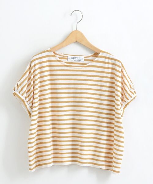肩を落としたゆったりシルエットが可愛らしいボーダーTシャツ。細身のパンツにバランス良く合わせたり、ワイドパンツやスカートにインしてもおすすめ。日常着として気兼ねなく着れるので、春夏の定番アイテムになりそう!お持ちのボトムに合わせてお気に入りのカラーを見つけて下さい♪手洗い可 ドライクリーニング可 陰干し*摩擦や水濡れによる色落ち・色移りにご注意下さい。*製品洗いを施している為、一点一点について若干風合い・サイズが異なりますがご了承下さい。