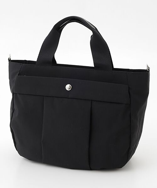 本体素材にコットンとナイロンの混紡素材64クロスを使用。正面のプリーツやあえて無地テープを使用したハンドルやショルダーストラップなどで、スッキリと少しキレイ目な印象で通勤から休日のオフスタイルまで幅広くお使いいただける2Way手提げバッグ。ファスナー式の本体収納はB5サイズ(18.2cm×25.7cm)が収納可能なサイズ感。正面の出し入れがしやすい上向きファスナーポケット内にはスマホやパスケースなどの収納に便利なポケットがありとても機能的。 ショルダーストラップは着脱可能です。