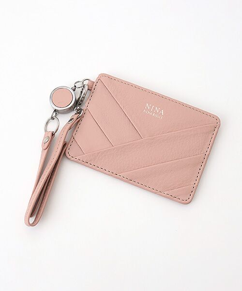 前面にカシュクール風のデザインをあしらい、シャープさとエレガントさを表現したパスケース。カシュクール風のデザインはキセの手法で作ることで、縫い目を表に出さずに折り目が見えるのでスッキリとした仕上がりになっています。伸縮式のリールは最大約40cmまで伸び、窓付きのパスケース入れ以外にも本体上部にカードポケットがついていたりと通勤にとても便利です。