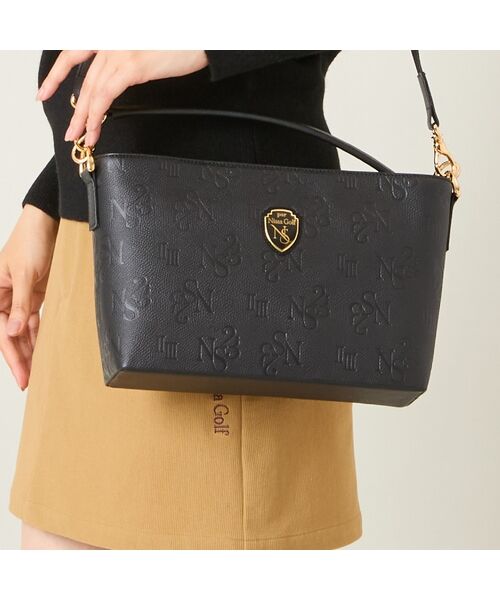 リアルレザーにモノグラムの型押しをしたオリジナルマテリアルの2wayショルダー。