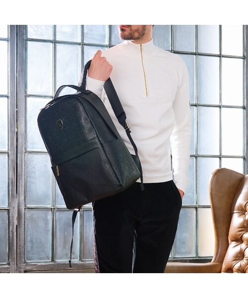 リアルレザーにモノグラムの型押しをしたオリジナルマテリアルのリュック。