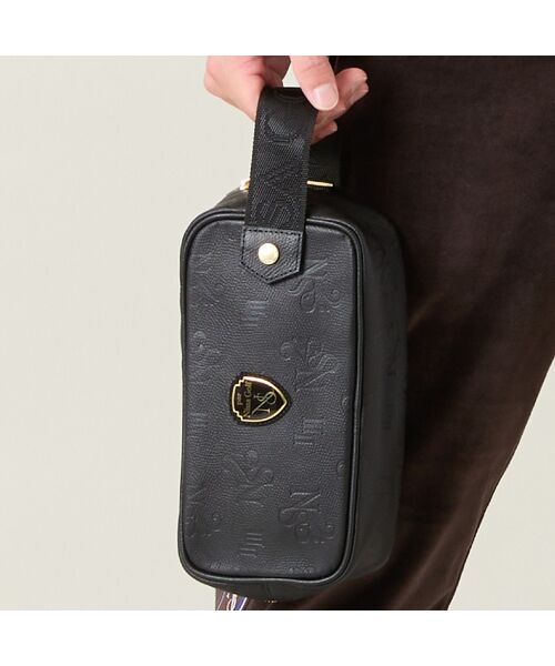 リアルレザーにモノグラムの型押しをしたオリジナルマテリアルのセカンドバッグは、メンズに人気のデザイン。ゴルフ以外のシーンでも使いやすいデザインとサイズ。持ち手は同色のブランドロゴジャカードでよりシックなデザインになっています。ブラック1カラー展開■コンセプト■南フランスのリゾート地ニース(プロバンス語で「Nissa」)をイメージしたゴルフブランド。美しいコートダジュールを背景にヨーロッパのエスプリを感じさせる洗練されたウェア&グッズを展開します。