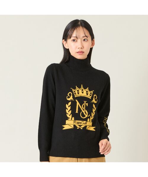 【レディース】オリジナルロゴカシミヤインターシャニットセーター