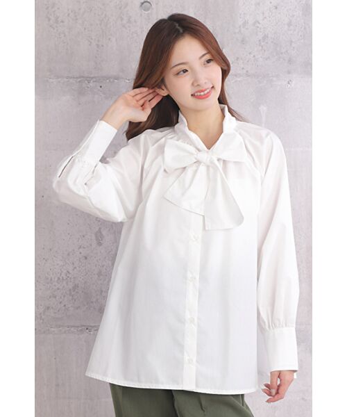 大きなリボンが印象的なボリューム ボウタイブラウス。
