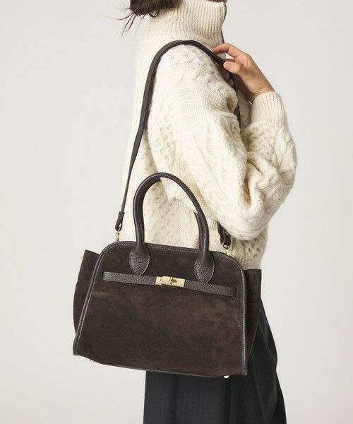 クラシカルなフォルムに、素材のコンビネーションが上品な印象を与えるバッグ。