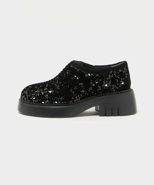 煌びやかなスパンコールが目を惹く、オブリークトゥのスリッポン。