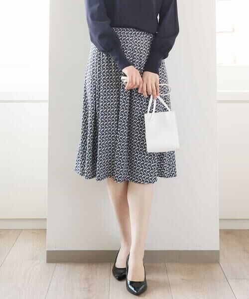 きれいめな雰囲気にぴったりな着る人を選ばないジオメトリック柄のジャージー素材のスカート。使い勝手の良いカラーが大人な印象で着こなせます。