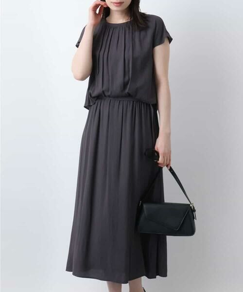 一見セパレートのような見え感のワンピース。ウエスト部分のベルトがメリハリのあるシルエットを叶えてくれます。ネックやスカート部分にギャザーやタックを施し、ふんわりと女性らしいシルエットが魅力。