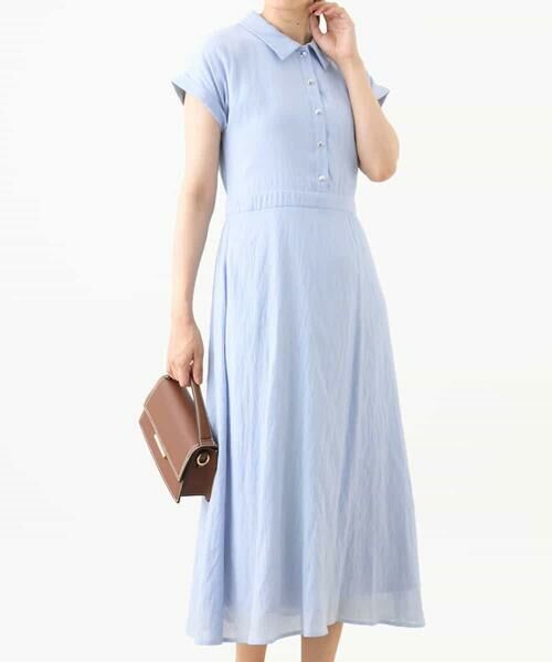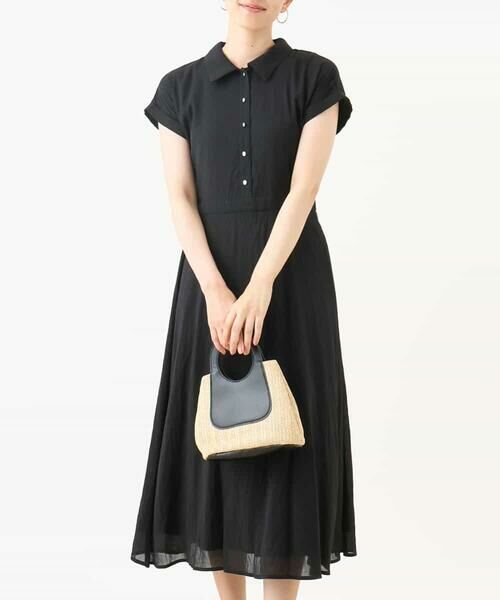 きちんと感のある衿付きワンピース。ウエストに切替えがあるので、一枚でもすっきりと決まるのが嬉しい。