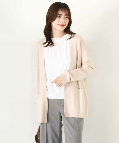 季節の変わり目に便利なカーディガン。釦レスでさらっと羽織れて、しっかりした印象に仕上がる一枚です。