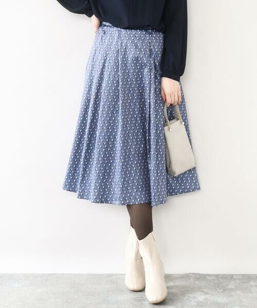 膝がしっかりと隠れながらも、足首がのぞく丈は通勤服としても大活躍の予感。同柄のブラウスとセットでワンピース見えの着こなしはもちろん、シンプルなトップスと合わせてもコーディネートに華やかさを添えるスカートです。