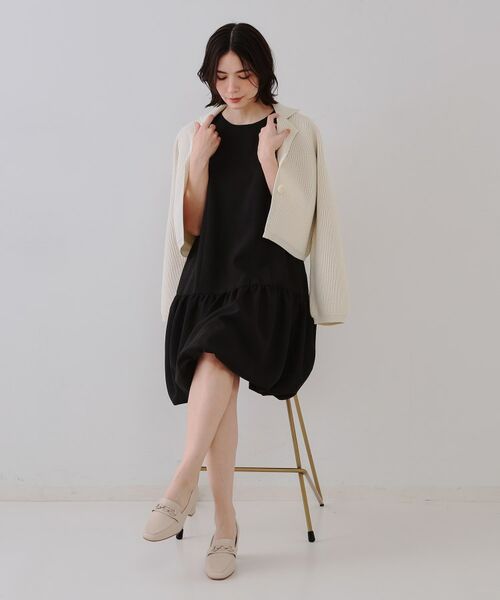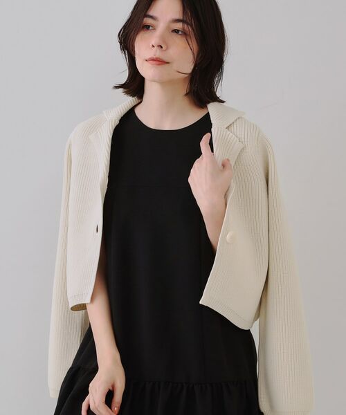 ・ミドルゲージで軽さと膨らみのあるニット素材のジャケット風ニットカーディガン。