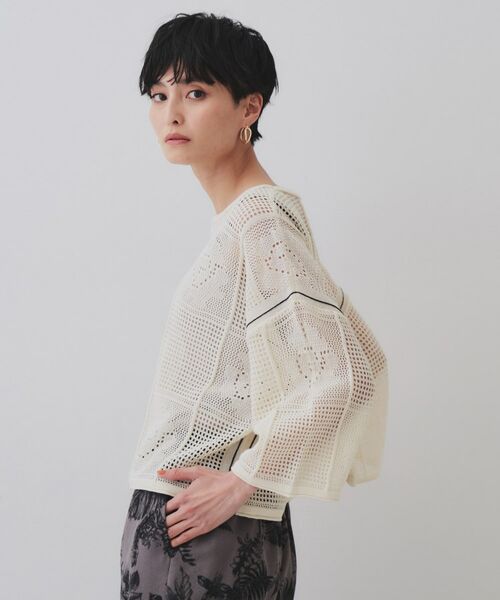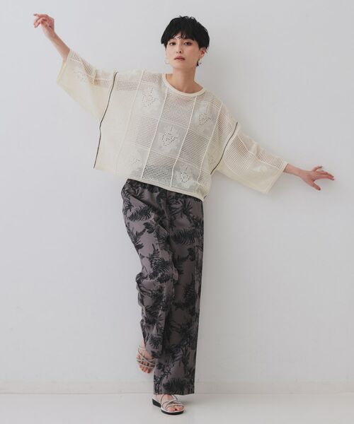 麻混モチーフ柄スカシニット【洗濯機洗い可】