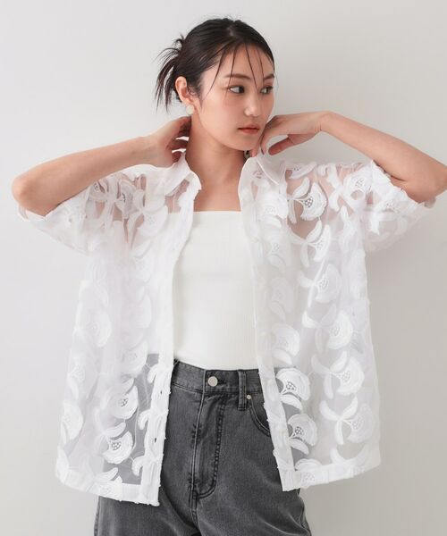 透け感と立体感が特徴の3Dフラワーレース素材が華やかなシャツ