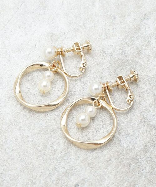 メタルリングにフェイクパールを掛け合わせた上品なイヤリング