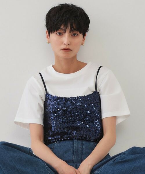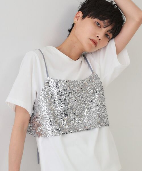 ・ベーシックなTシャツとセットになった、スパンコールキャミブラウス。