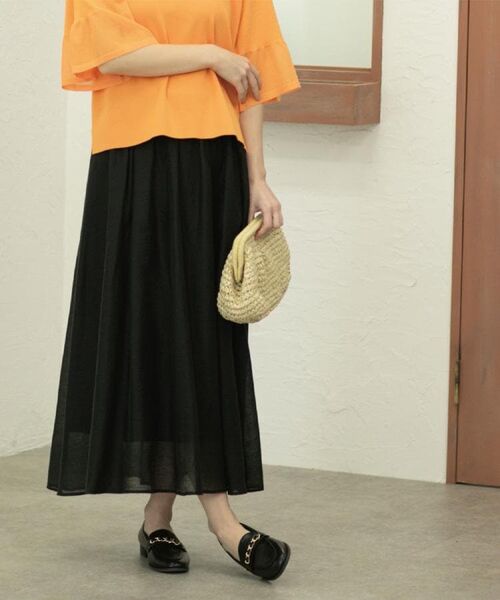 シアー感のある麻混素材を使用した、涼しげなフレアスカート