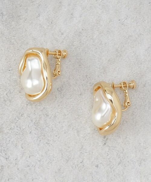 ニュアンス感のあるメタルフレームとフェイクパールを掛け合わせたイヤリング