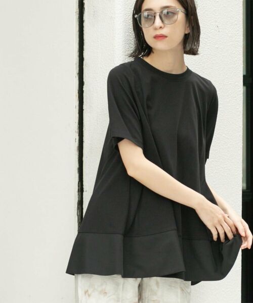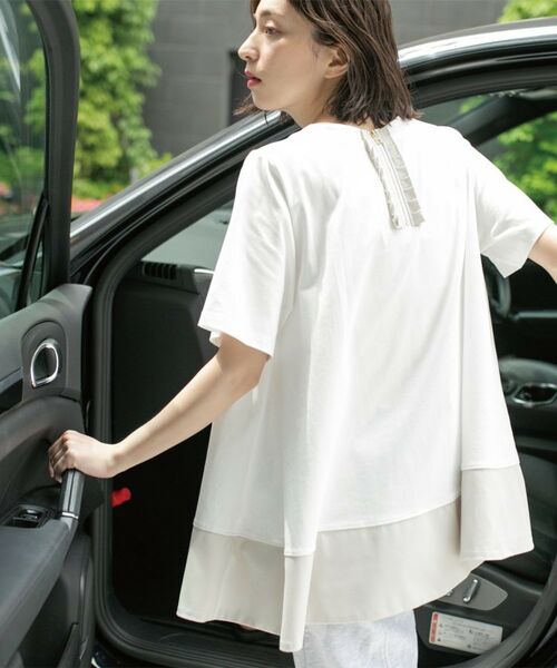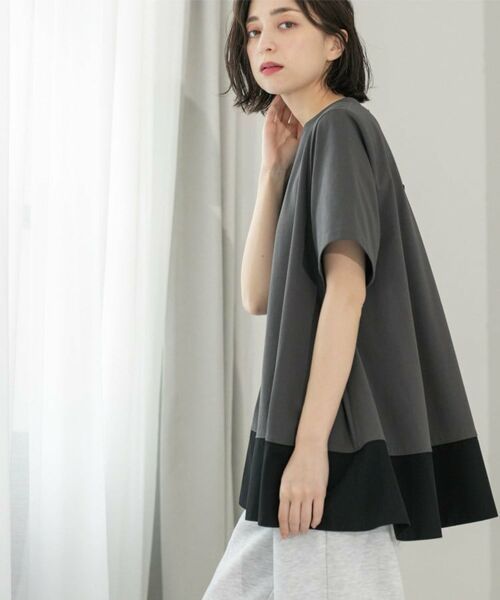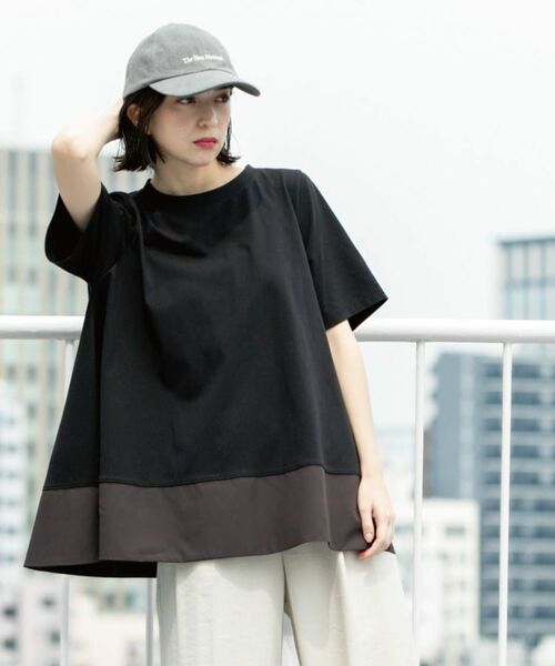 ・裾部分を別素材で切替えた、ドッキングデザイントップス。
