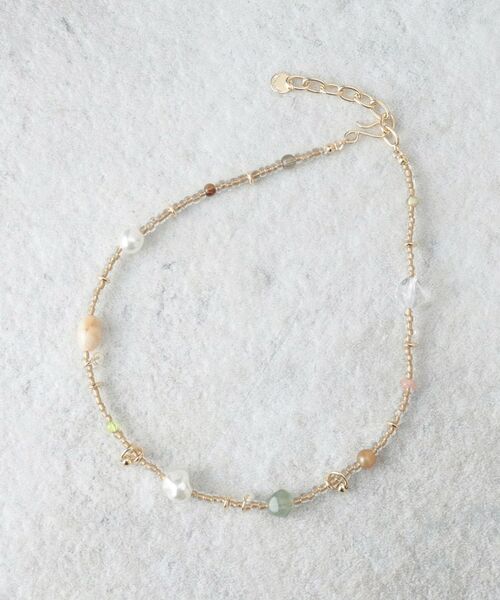 多彩なビーズを用いたマルチパーツショートネックレスは、個性的かつ華やかさを醸し出します。