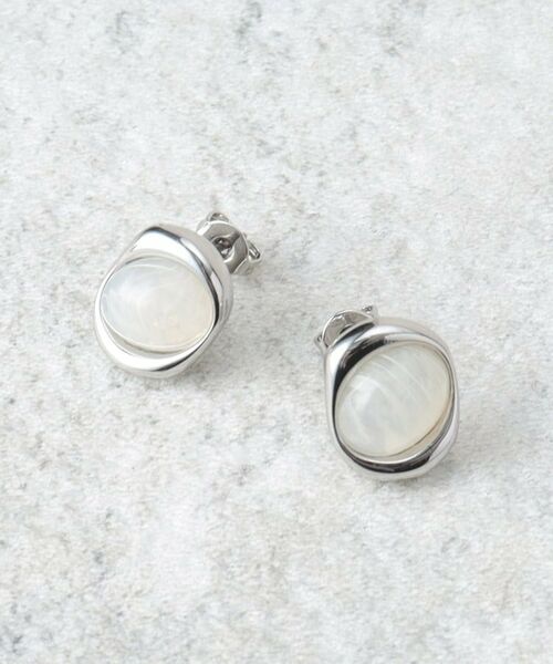 メタルとカラフルな樹脂を掛け合わせたピアスは、モダンでありながら遊び心のあるデザインが際立ちます。