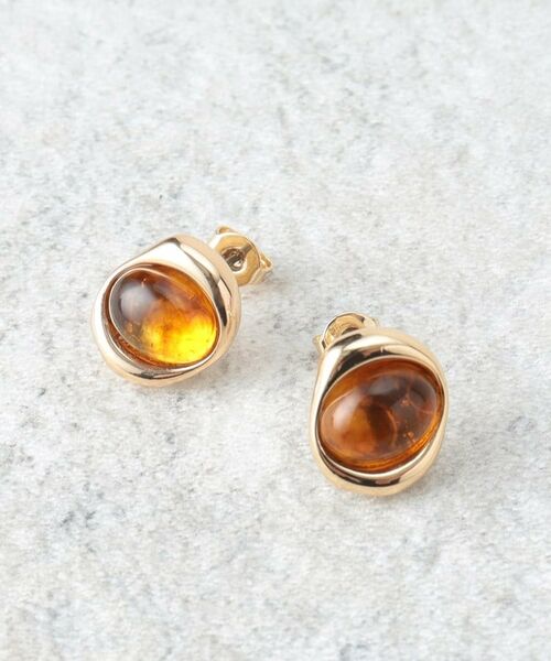 メタルの縁取りにカラー樹脂を掛け合わせたシンプルな形のピアス