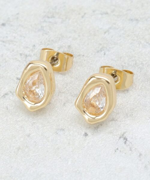 ビジューをメタルで縁取った顔周りに華やかさをもたらせてくれるピアス