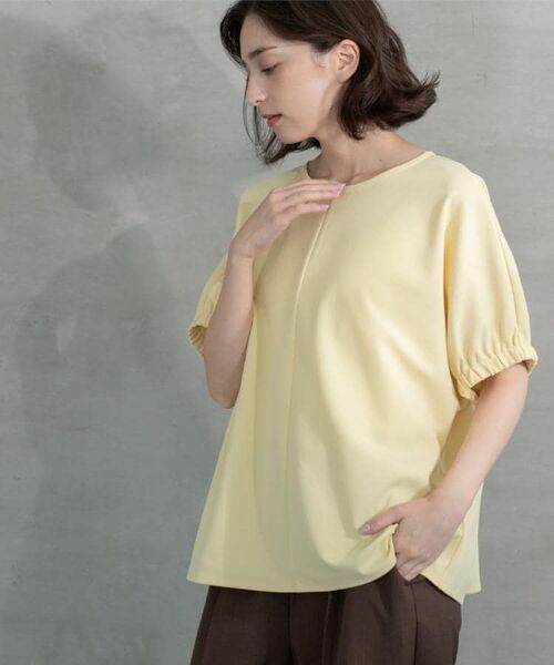 ・ブラウスのように見える着心地の良いカットソー素材を使用。